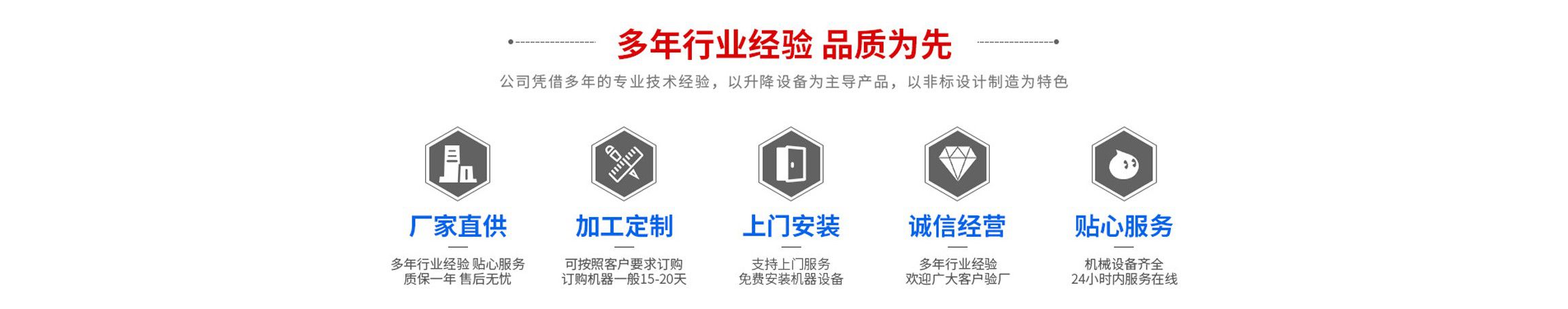 濟南翔宇升降機械有限公司是集研制、設計、開發、生產為一體的電動液壓升降平臺,液壓升降貨梯,升降機,移動升降機,貨梯,升降機廠家,升降平臺價格,升降平臺廠家專業生產企業。本公司生產設備精良,技術力量雄厚,工藝先進合理,檢測手段齊全,所有產品符合國家行業標準,全部產品已經通過國家特種設備檢測站檢測。公司生產的液壓升降臺,采用意大利、法國、德國液壓泵站系統,意大利液壓系統防爆裝置和液壓自鎖裝置嚴格按照國家標準。公司還可以根據用戶的需求設計制造包括特殊尺寸、承載能力、防爆電器的液壓升降臺。  公司擁有一批優秀的設計人才,其中僅高級技術人員就20多人,他們或是來自名牌高等院校,或是在長期實踐中精通了行業的先進技術,成熟中求創新,使得我們的產品處于不敗;同時我們還擁有一大批技術熟練的產業工人,他們是保證高等級產品質量的關系因素?! 」窘涍^多年的對液壓升降設備的研制和探索,積累了豐富的專業技術和經驗,現已成為國內設備先進、產品齊全的液壓升降平臺,液壓升降機生產制造企業。目前公司產品有八大系列六十多個品種,產品質量符合JB/T9229.1(2.3)-1999標準。產品設計新穎、結構合理、升降平穩、操作簡單,廣泛應用于工礦企業、鐵路、公路、機場、郵電、石油、電力等部門的高空作業、安裝、維護;生產線上的貨物...